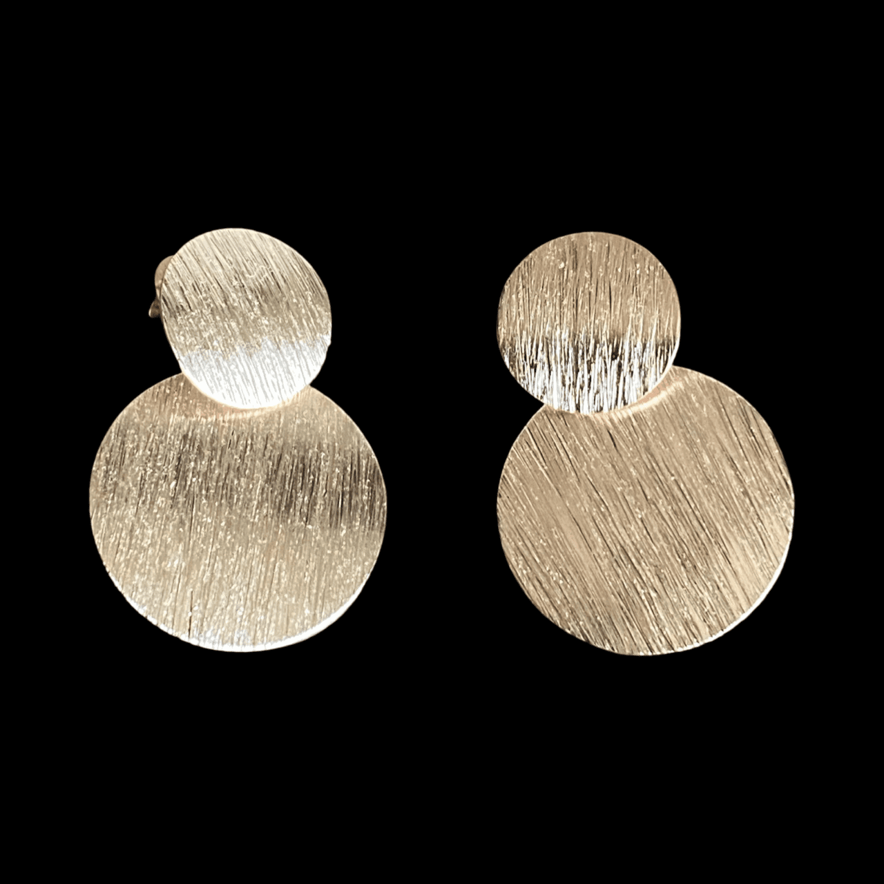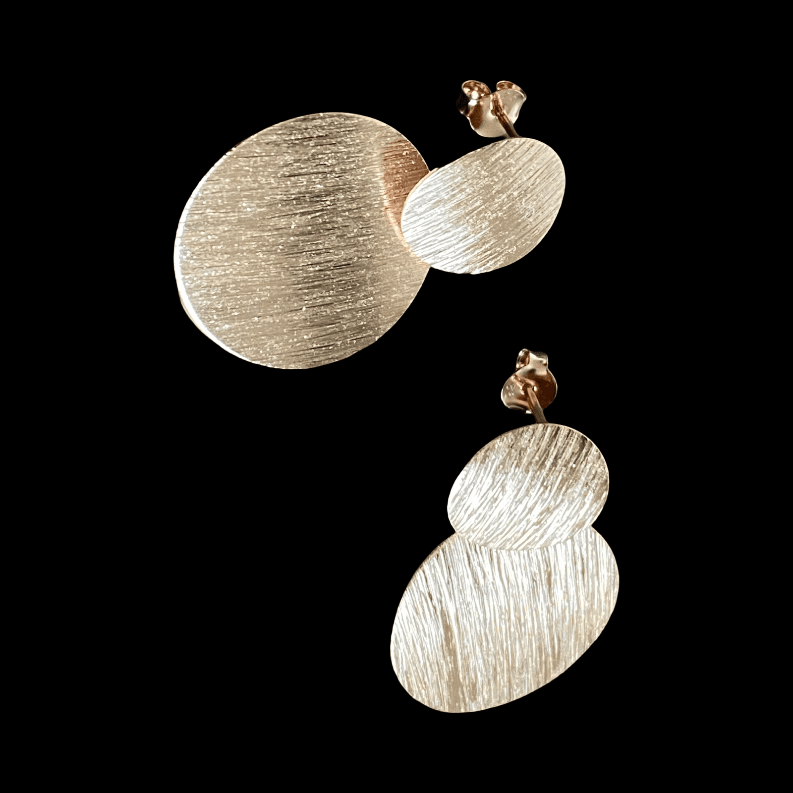 Boucles d'oreilles composées de 2 cercles en argent plaqué or rose brossé reliées par 1 petit anneau qui leurs donne un joli mouvement.