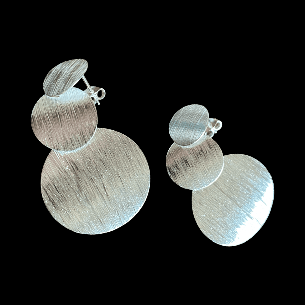 Boucles d'oreilles composées de 3 cercles en argent brossé reliées par de petits anneaux qui leurs donnent un joli mouvement.