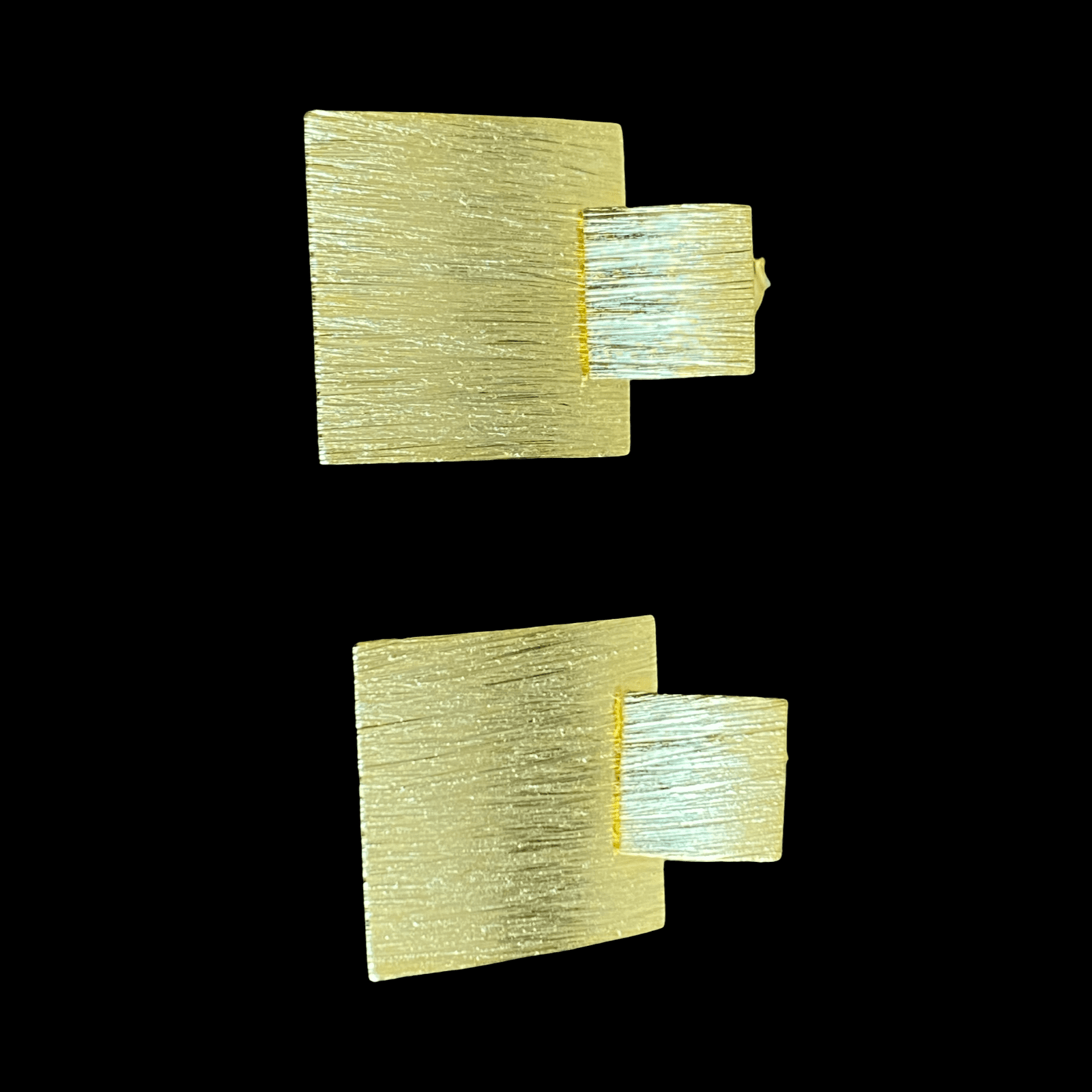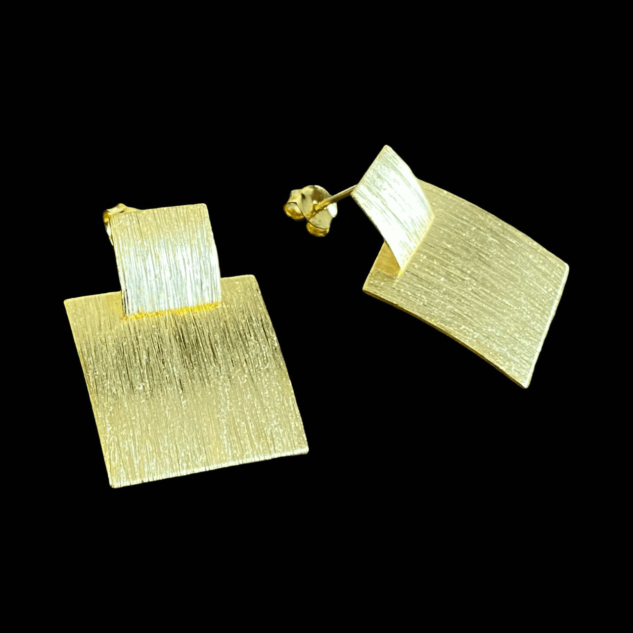 Boucles d'oreilles en argent composées de pièces carrées en argent brossé plaqué or jaune?