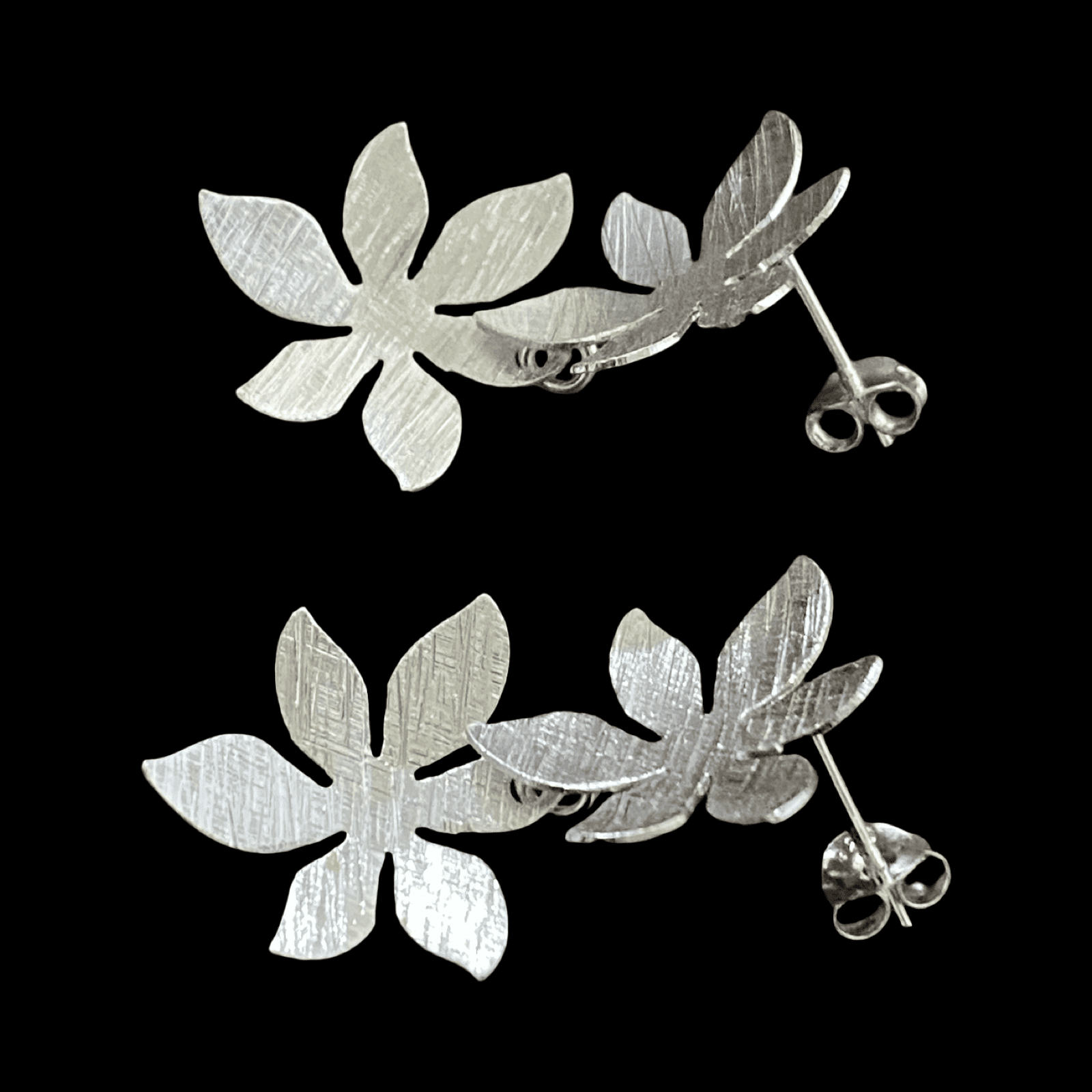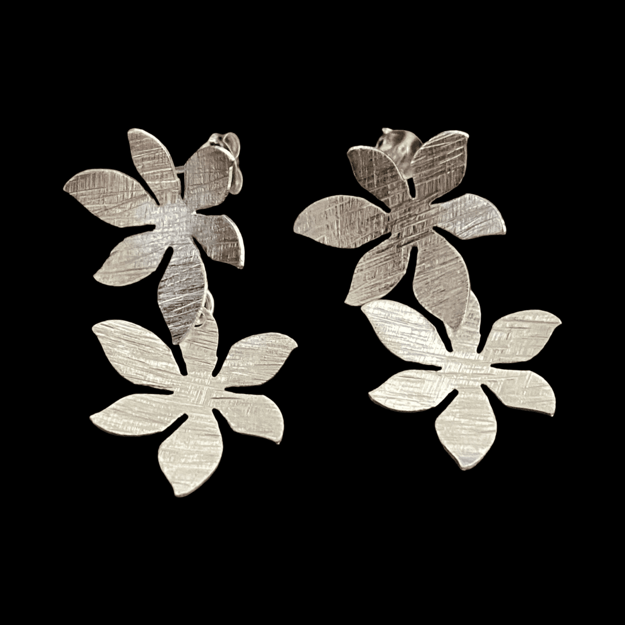 Boucles d'oreilles Composée de 2 fleurs superposées en argent.