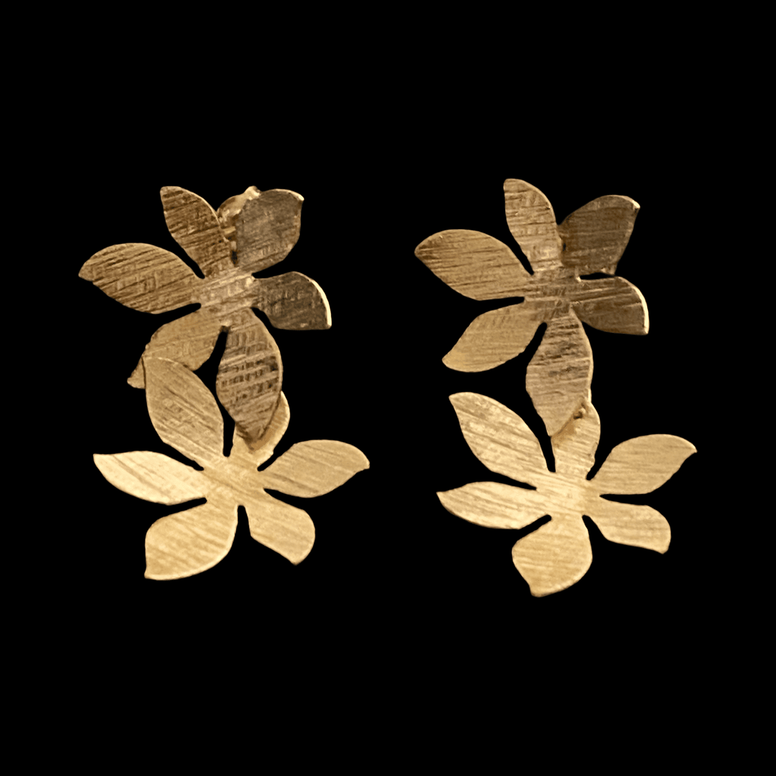 Boucles d'oreilles composées de 2 fleurs en argent plaqué or rose.