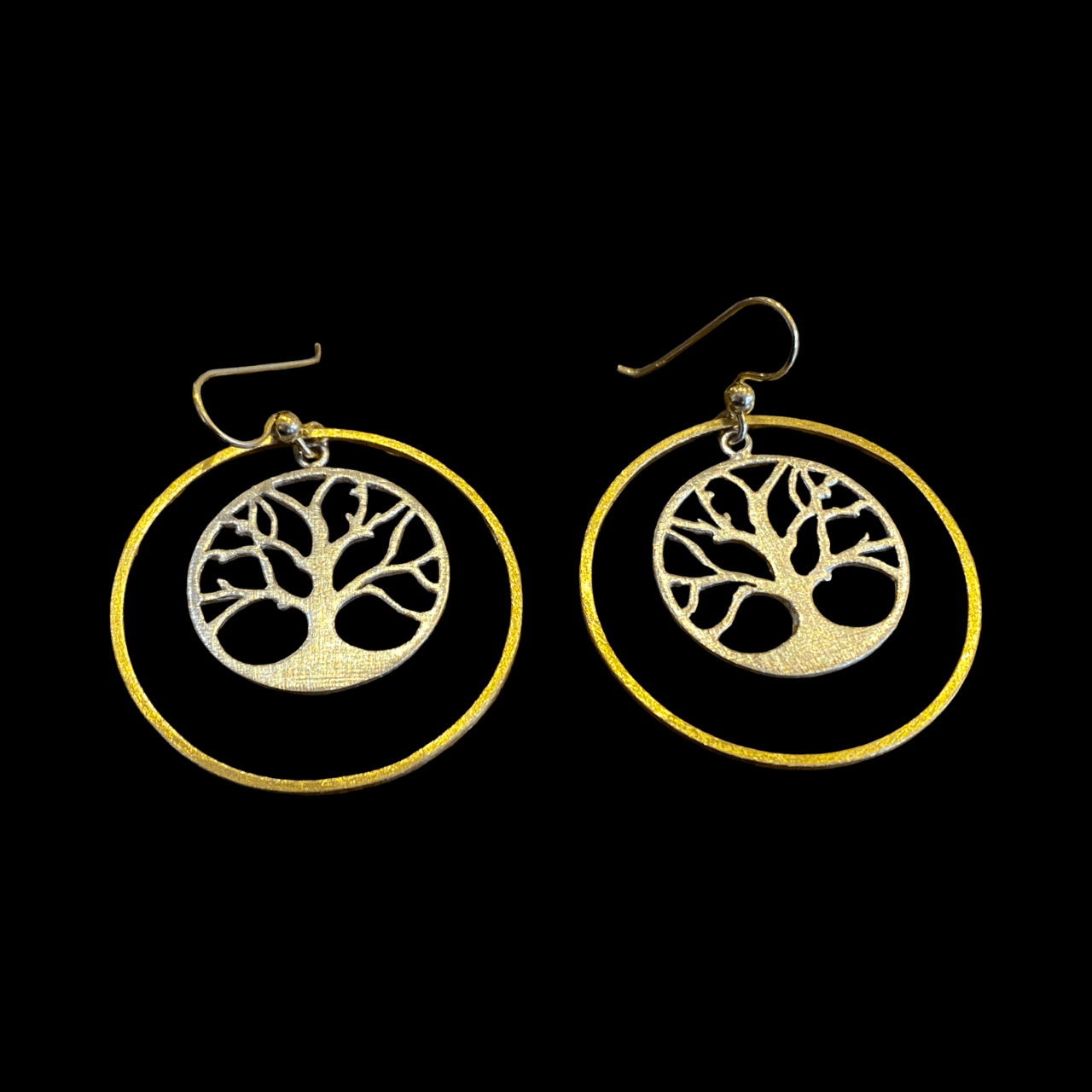 Boucles d'oreilles arbre de vie en argent et argent plaqué or