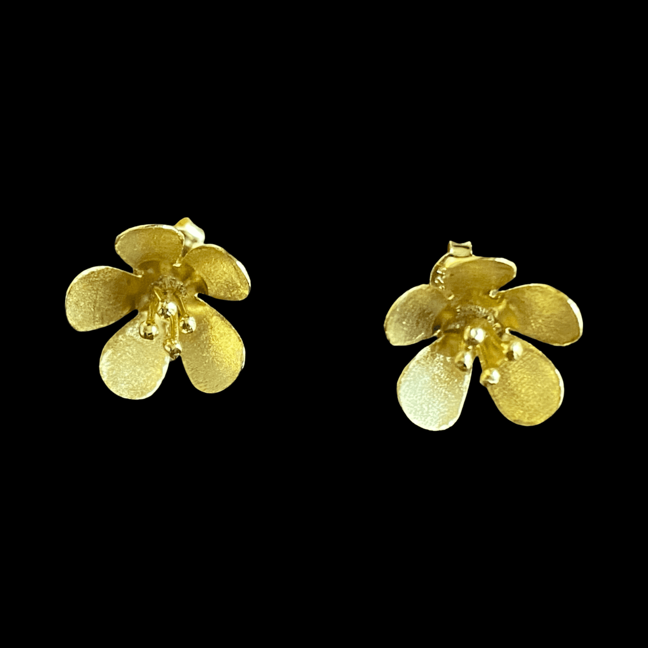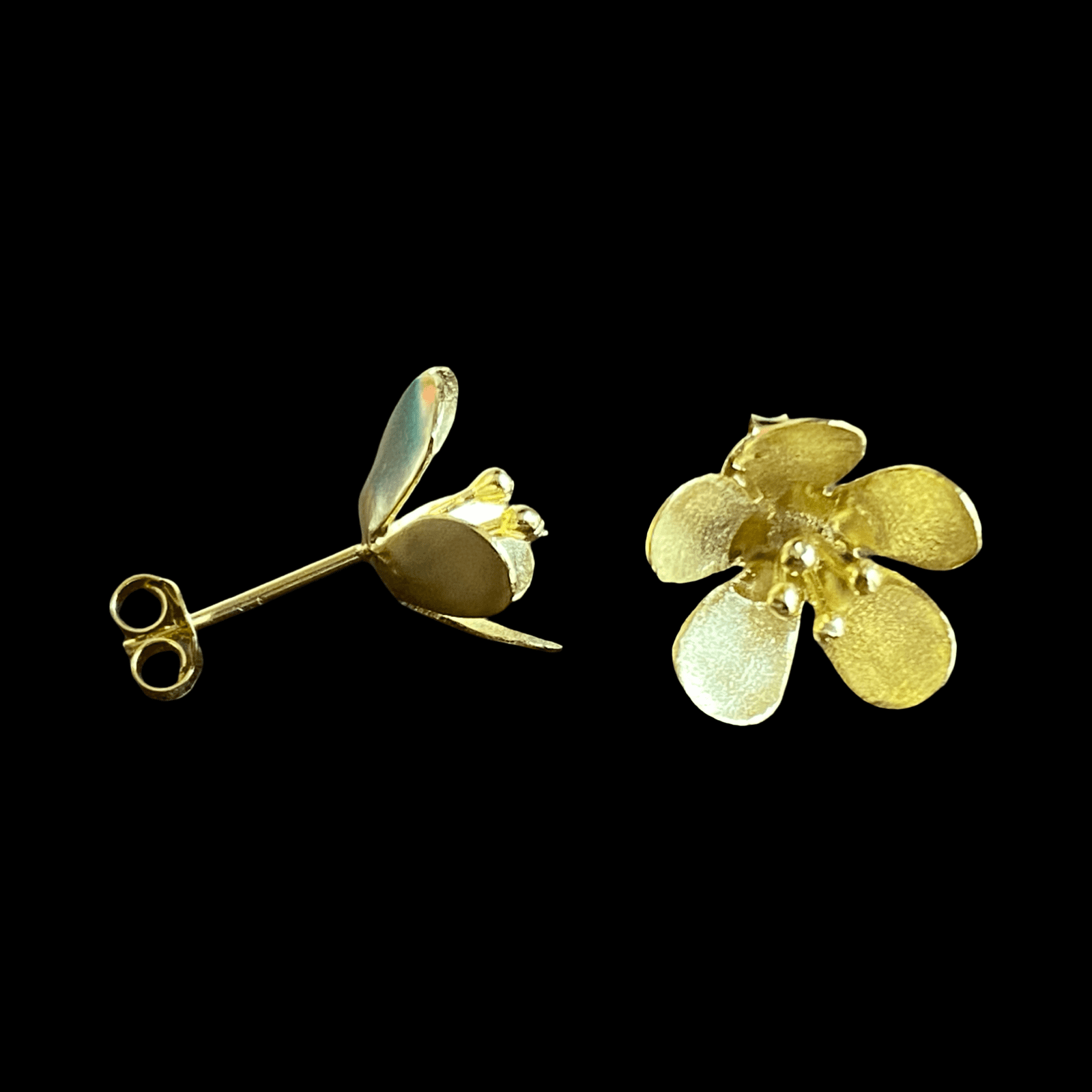Petites boucles d'oreilles représentant une fleur entre ouverte en argent plaqué or.