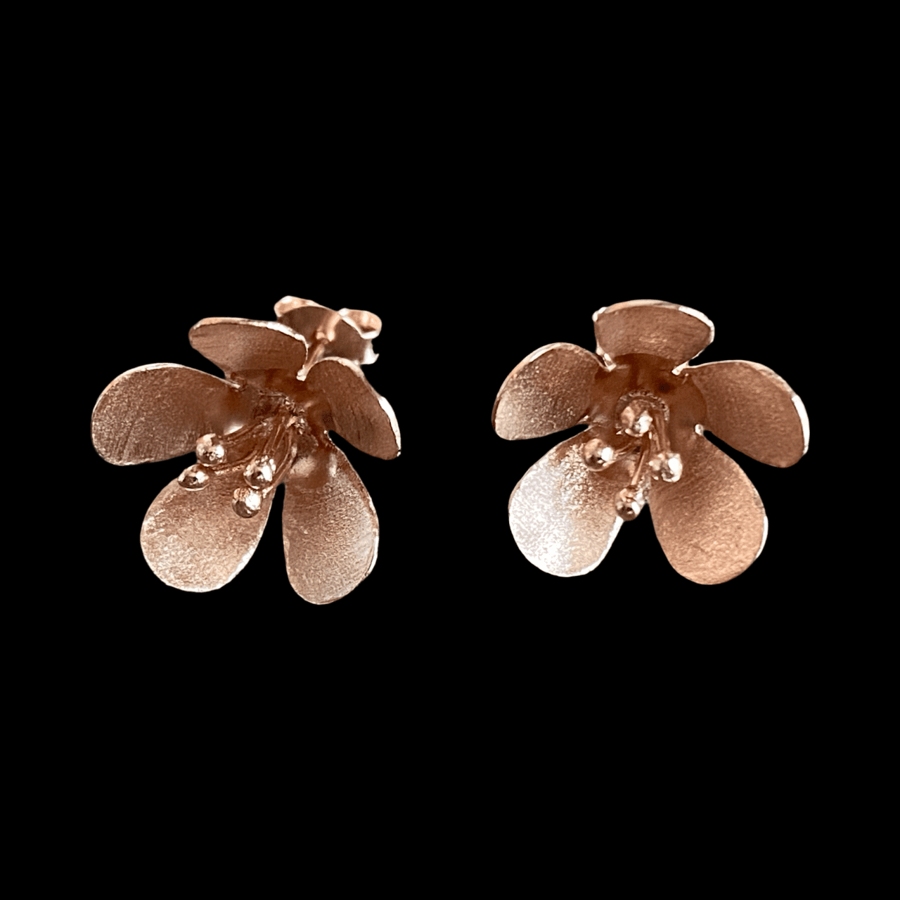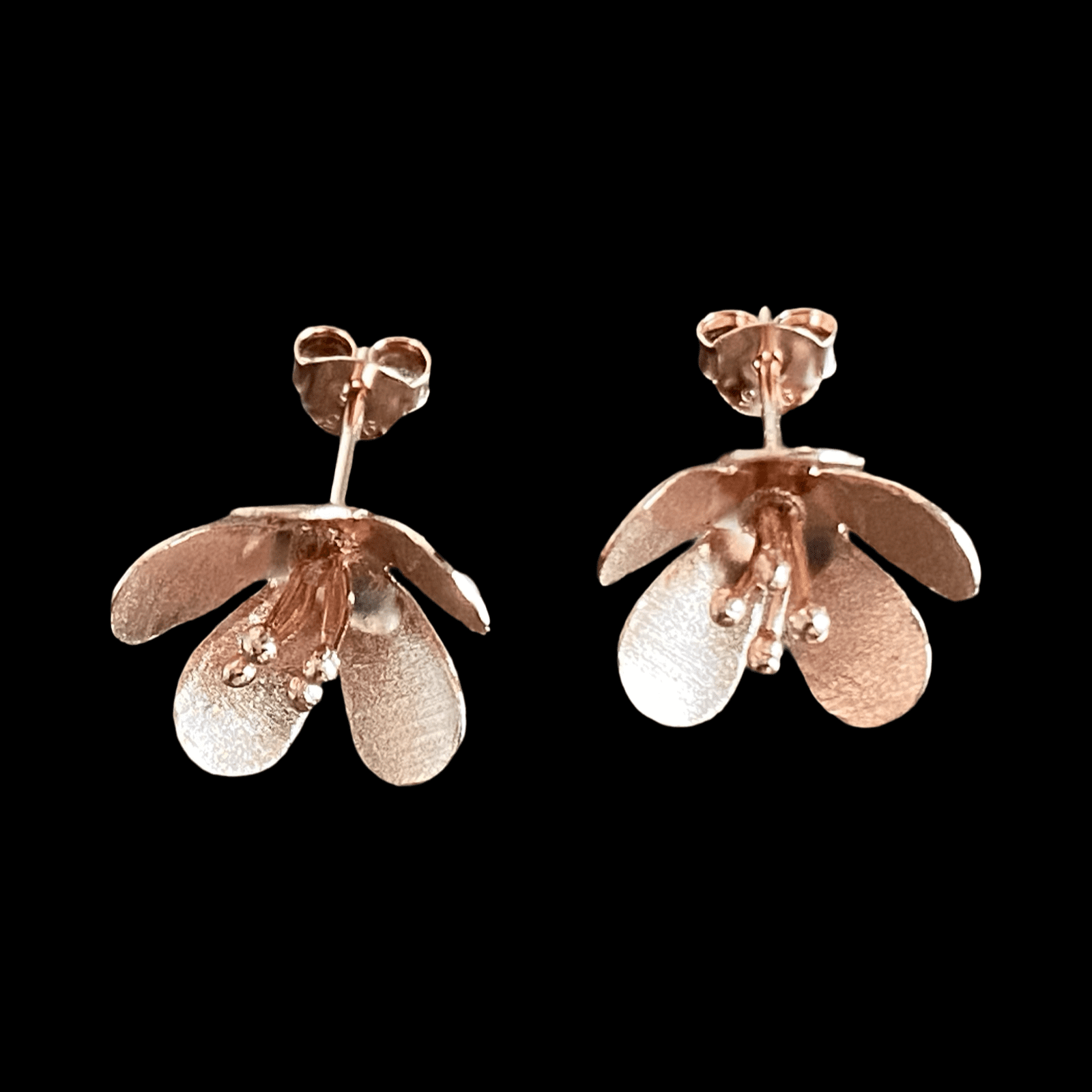 Petites boucles d'oreilles représentant une fleur entre ouverte en argent plaqué or. rose