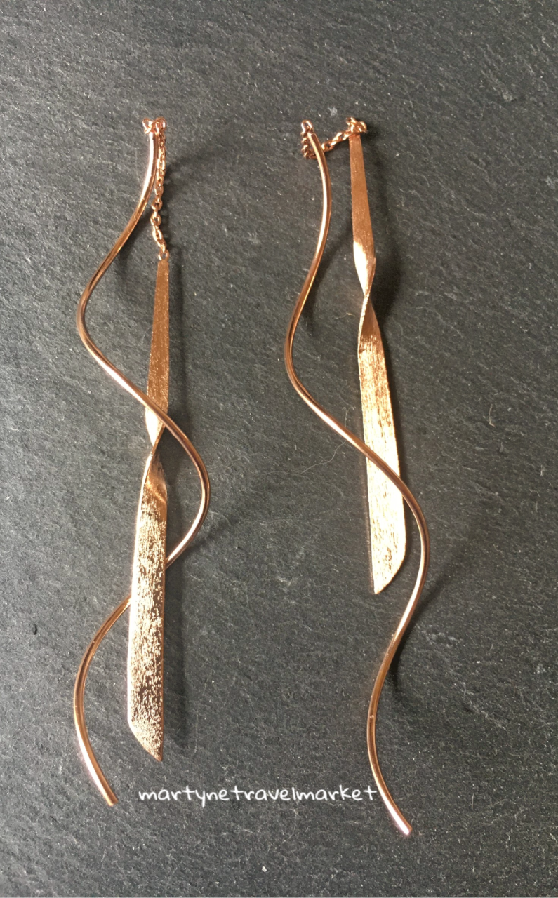 Boucles d'oreilles argent plaqué or rose composées de 2 parties reliées par une chainette.