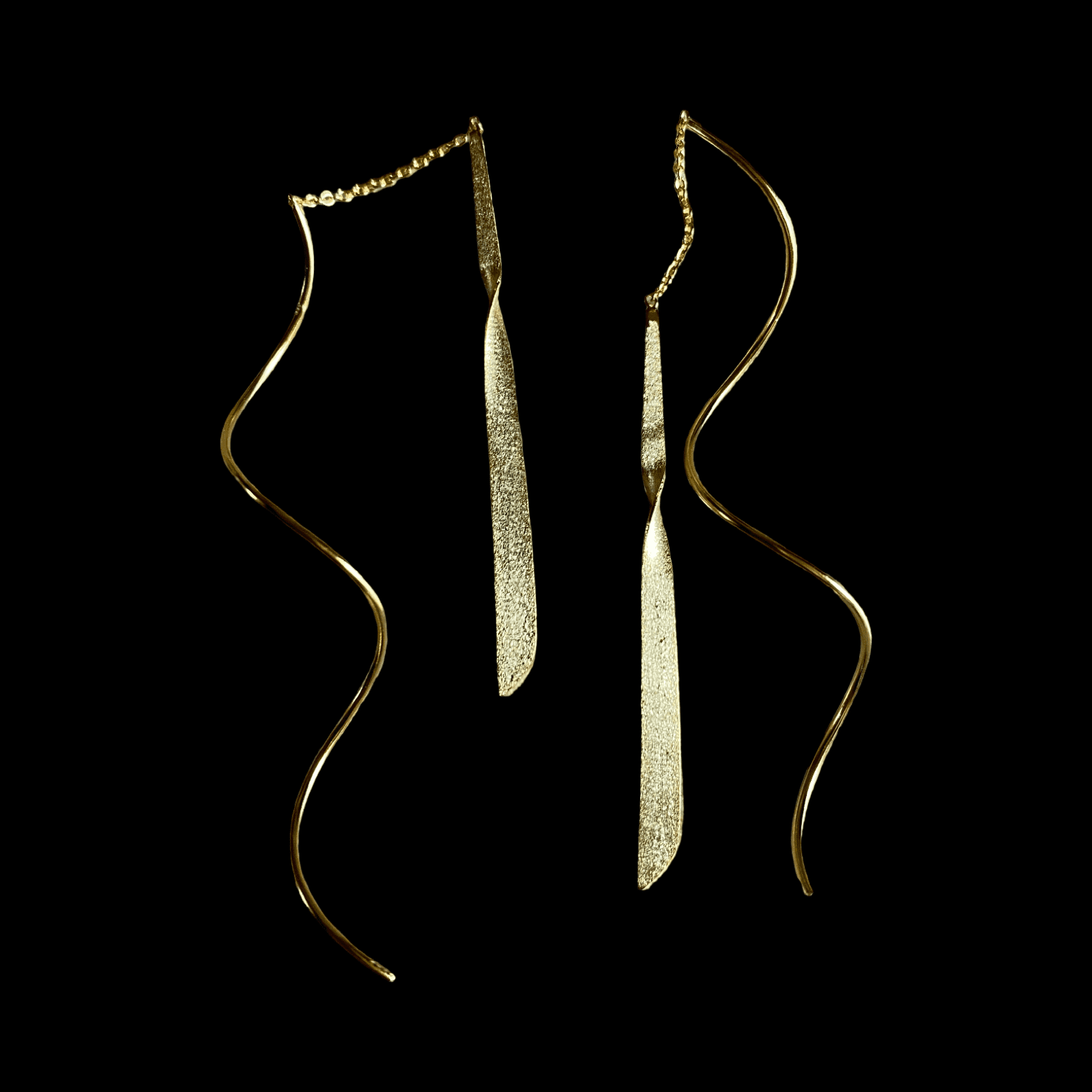 Boucles d'oreilles vermeil composées de 2 parties reliées par une chainette.