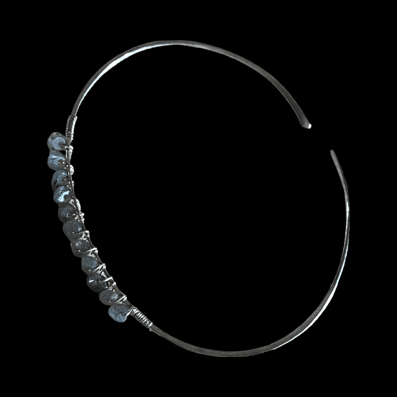 Bracelet jonc en argent sur lequel sont fixées 11 petites perles de labradorite