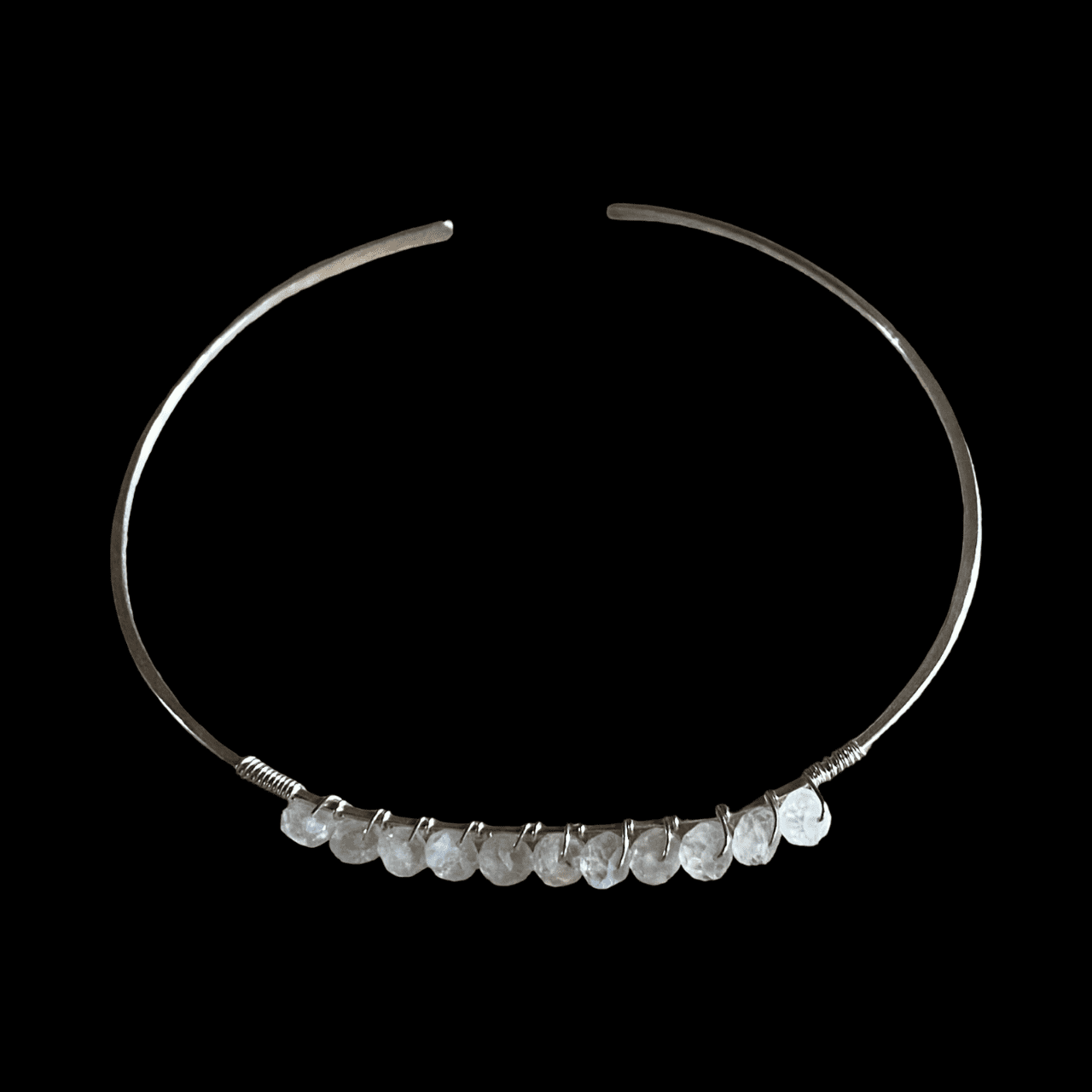 Bracelet jonc en argent sur lequel sont fixées 11 petites perles de pierres de lune