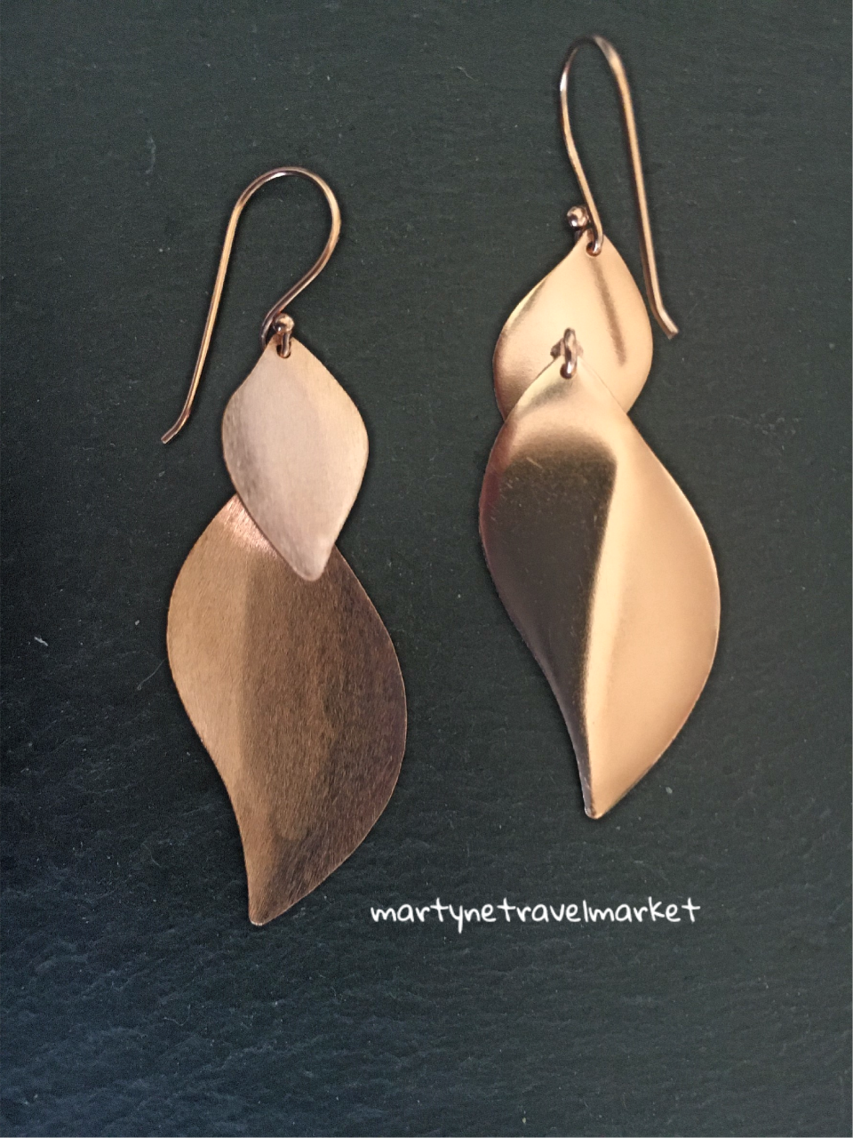 Boucles d'oreilles 2 pétales superposés en argent en argent plaqué or rose