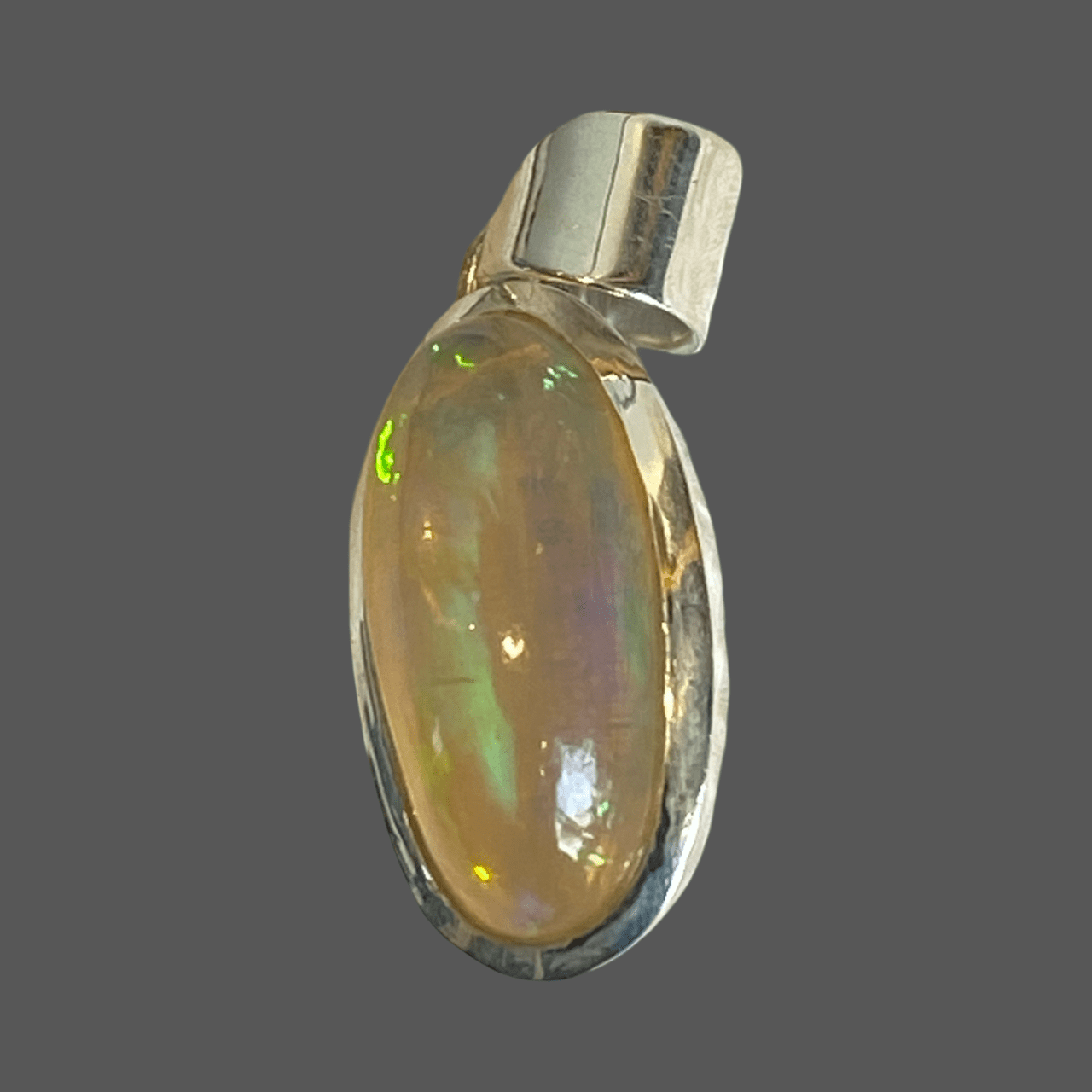 Trés belle et lumineuse opale montée en pendentif sur argent.